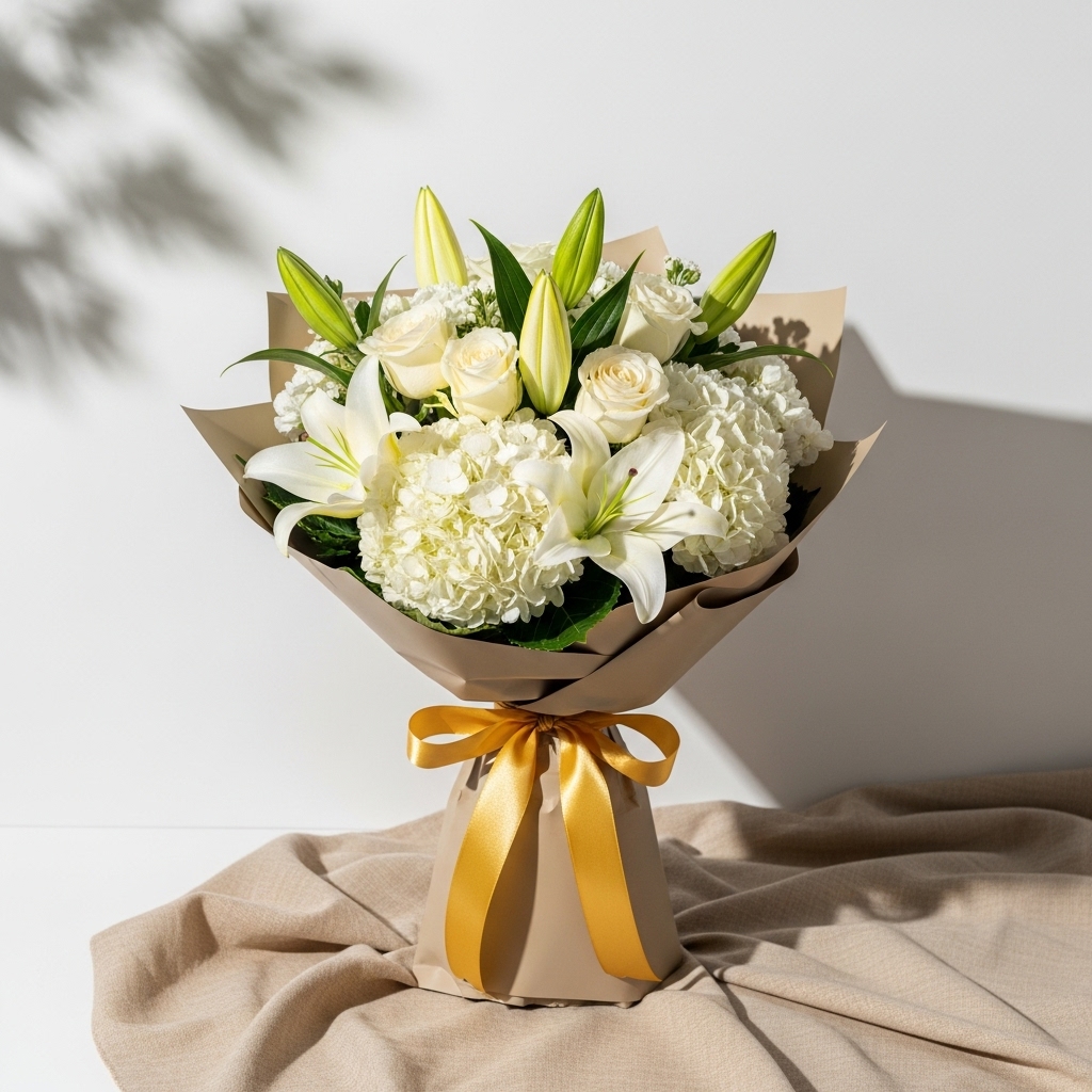 Karışık Beyaz Ortanca & Gül & Lilyum Buketi