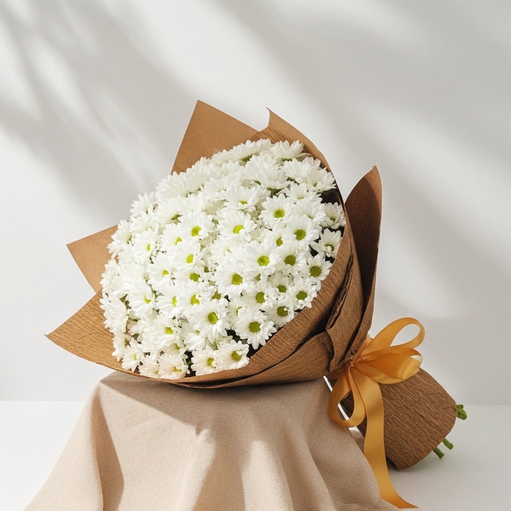 Beyaz Papatya Buketi – taze ve özenle hazırlanmış tasarım. Özel günler ve sürprizler için ideal, uygun bölgelerde aynı gün teslim.