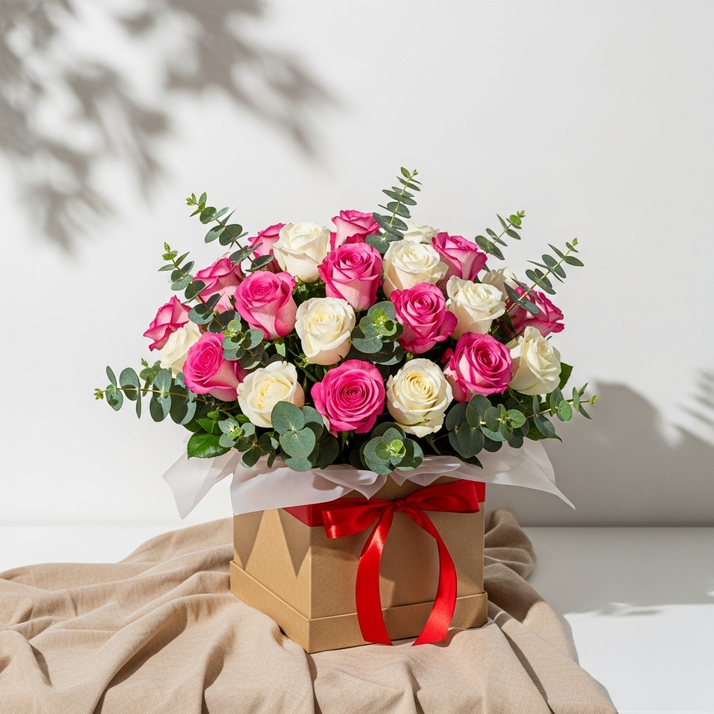 41’Li Karışık Pembe Beyaz Gül Kutuda