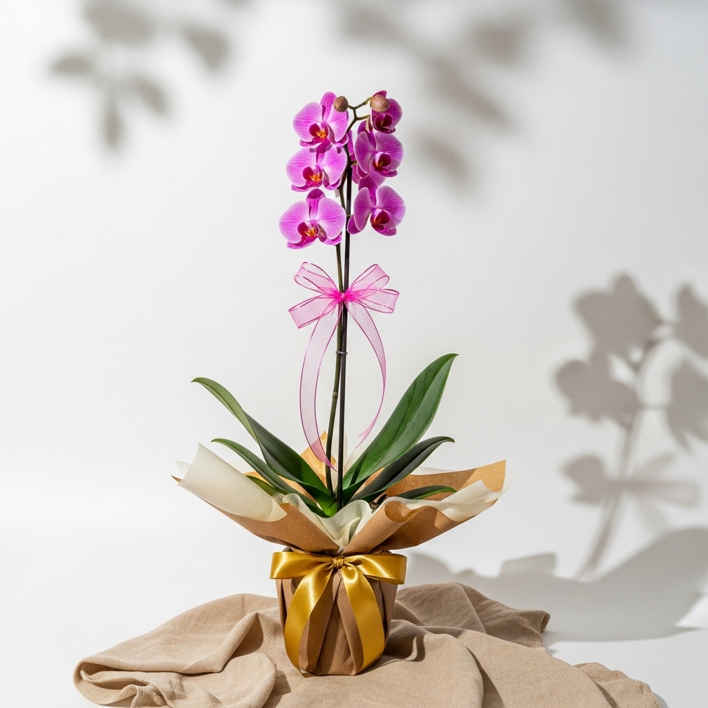 Tek Dal Pembe Orkide Saksıda, özenle seçilmiş orkidelarla hazırlanan şık bir aranjmandır. Dengeli kompozisyonu ve zarif sunumuyla doğum günü, yıldönümü, tebrik, teşekkür ve geçmiş olsun gibi pek çok an için uygundur. Tasarım, sezona göre yeşillik ve yardımcı çiçeklerle tamamlanır. Görseller temsilidir; stok durumuna göre aynı kalite ve tazelikte küçük farklılıklar olabilir. Suyu tazeleyerek ve doğrudan güneşten uzak tutarak uzun süre canlılığını koruyabilirsiniz. Uygun teslimat bölgelerinde aynı gün teslim seçeneği mevcuttur.