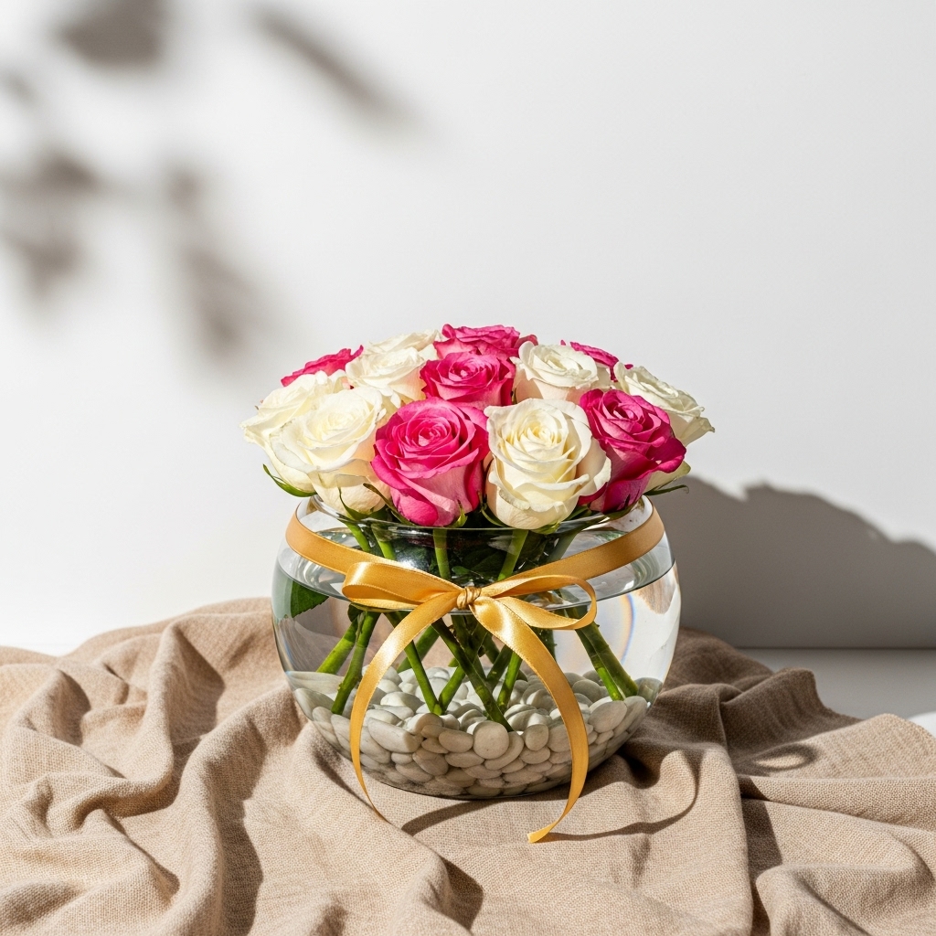 11’Li Karışık Pembe Beyaz Gül Vazoda – taze ve özenle hazırlanmış tasarım. Özel günler ve sürprizler için ideal, uygun bölgelerde aynı gün teslim.